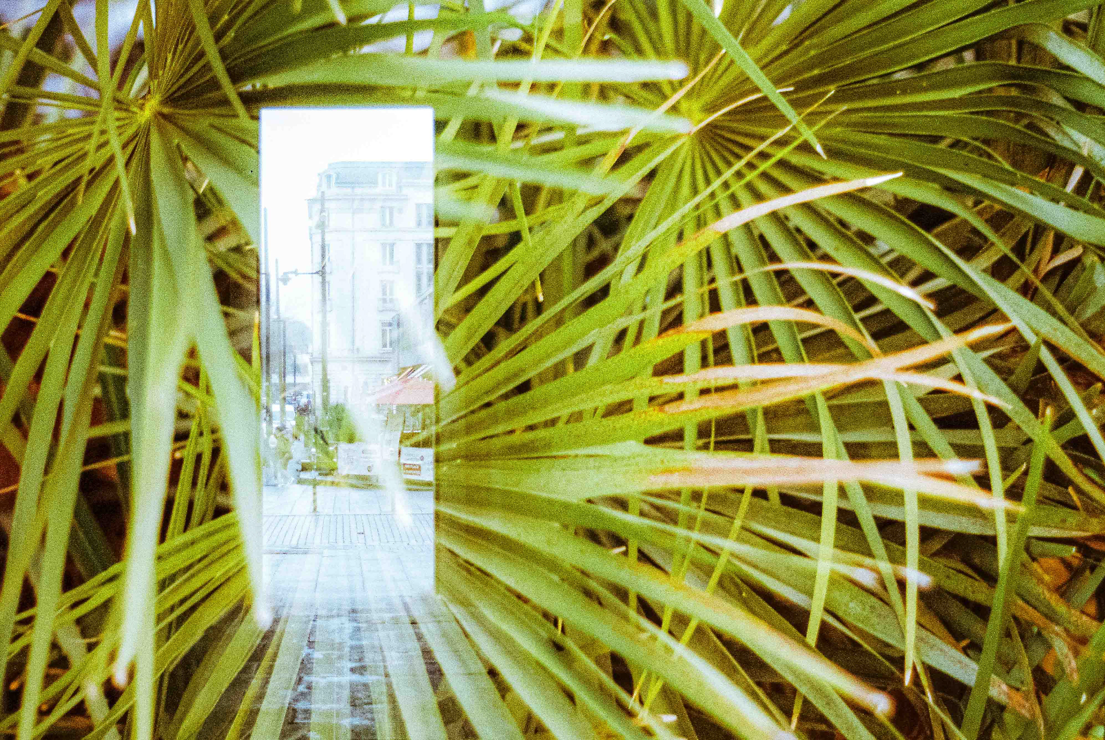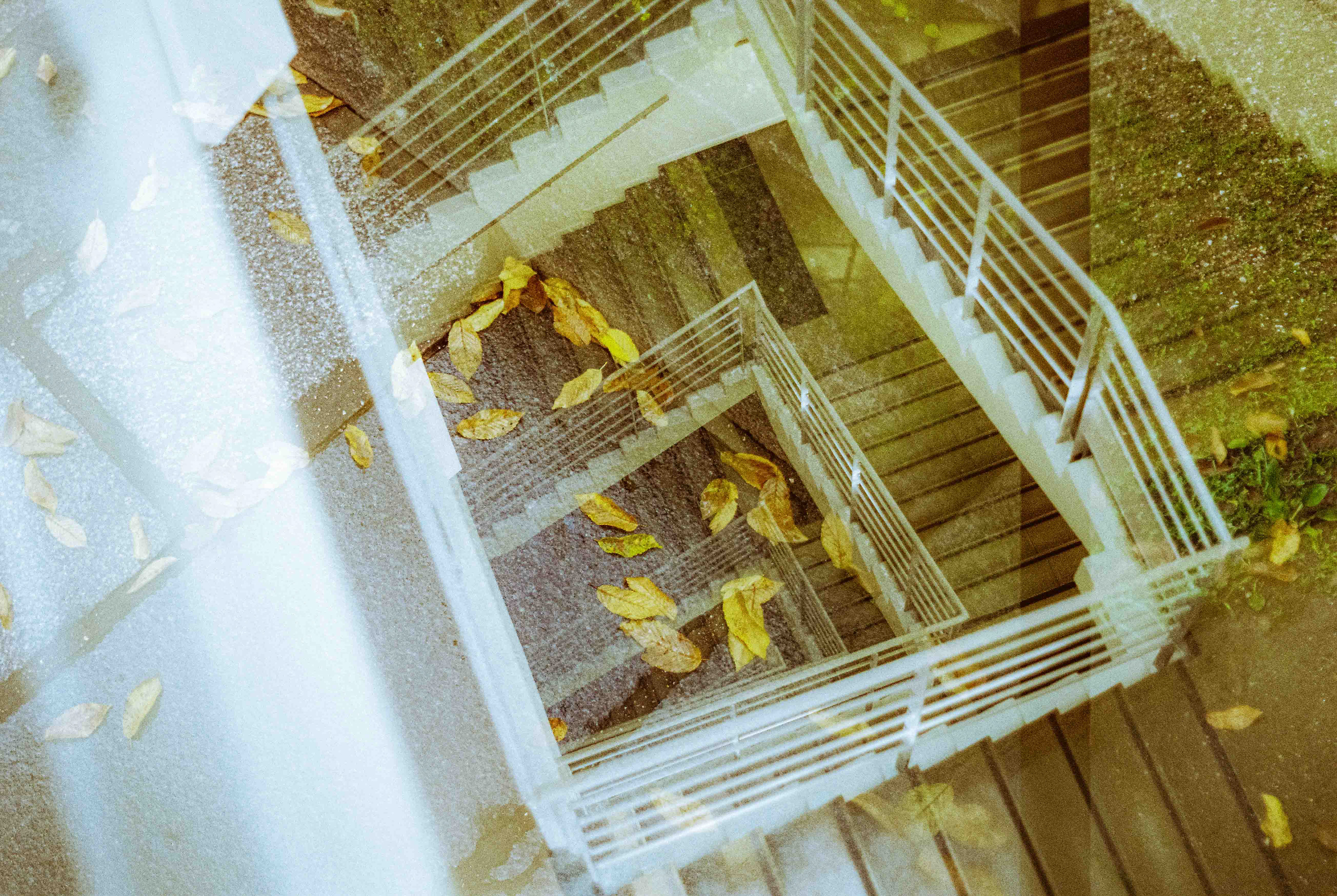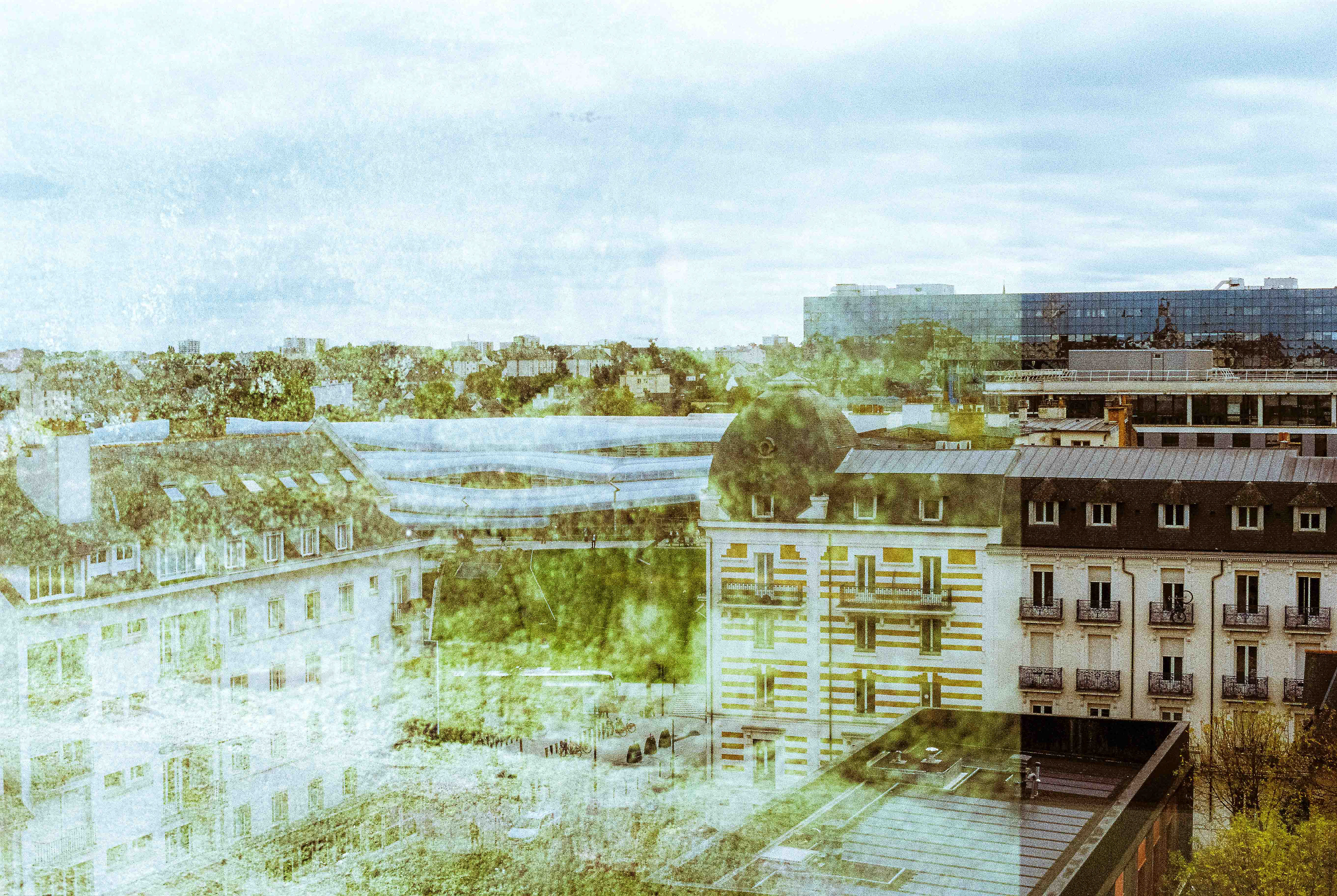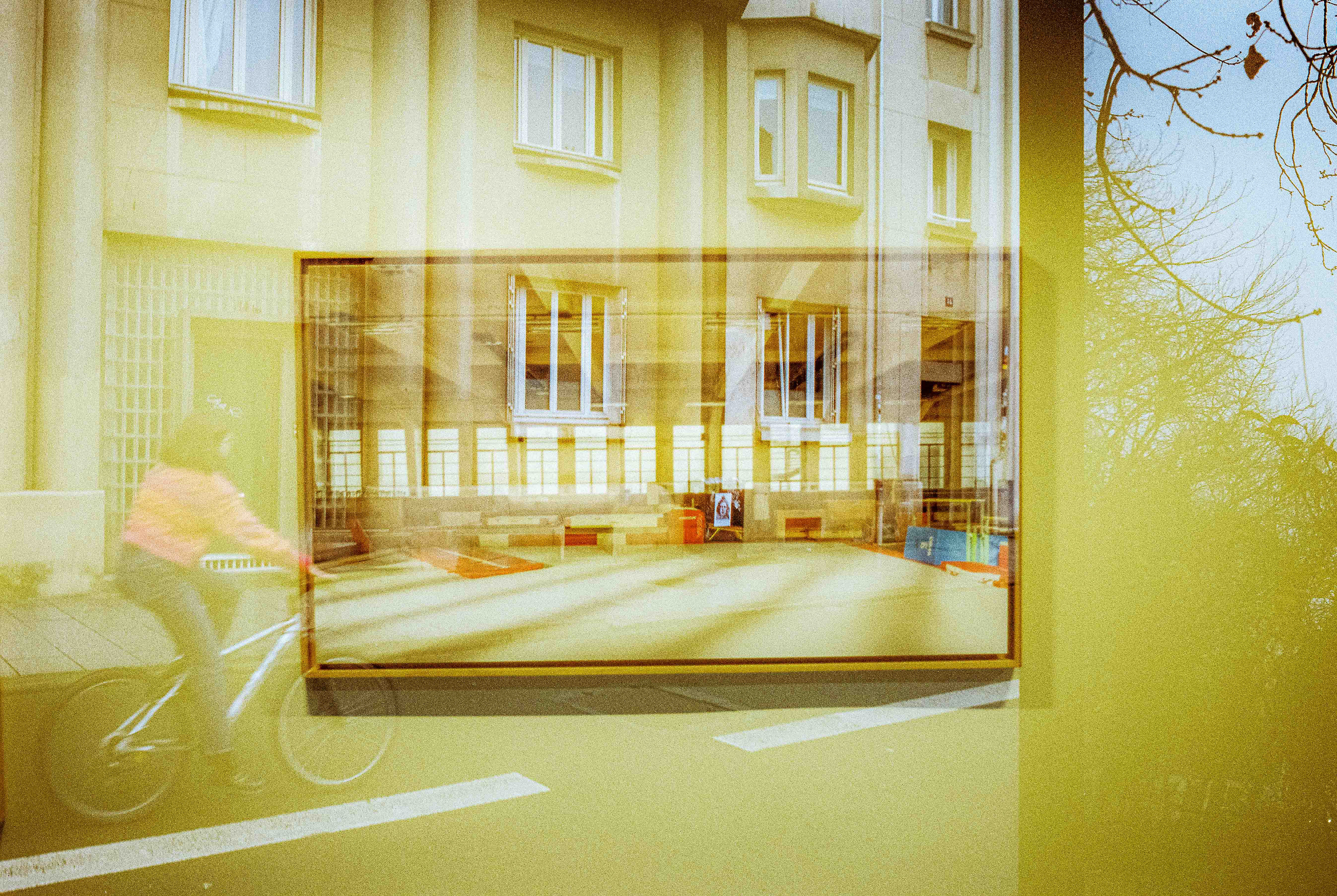 La double exposition est une technique photographique qui consiste à superposer plusieurs images, selon plusieurs procédés. Ici, elle est réalisée à l'argentique, en déclenchant plusieurs fois l'appareil dans des environnements différents, sans faire avancer la pellicule, ce qui créer cette superposition de couches. Ce procédé me permets de mélanger, les lieux, les textures, les formes, les lumières et les ombres en créant des images riches, à la limite de la compréhension.