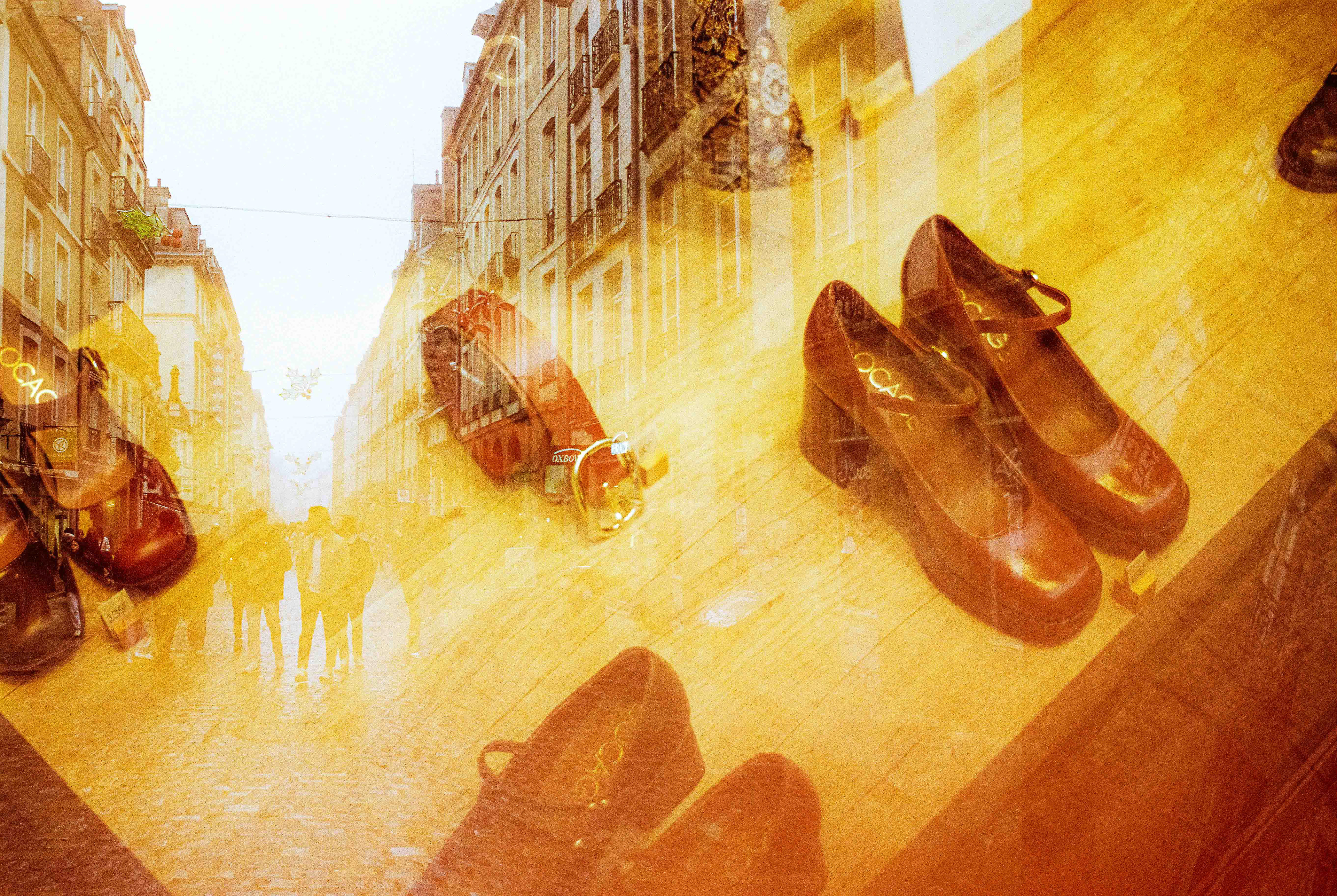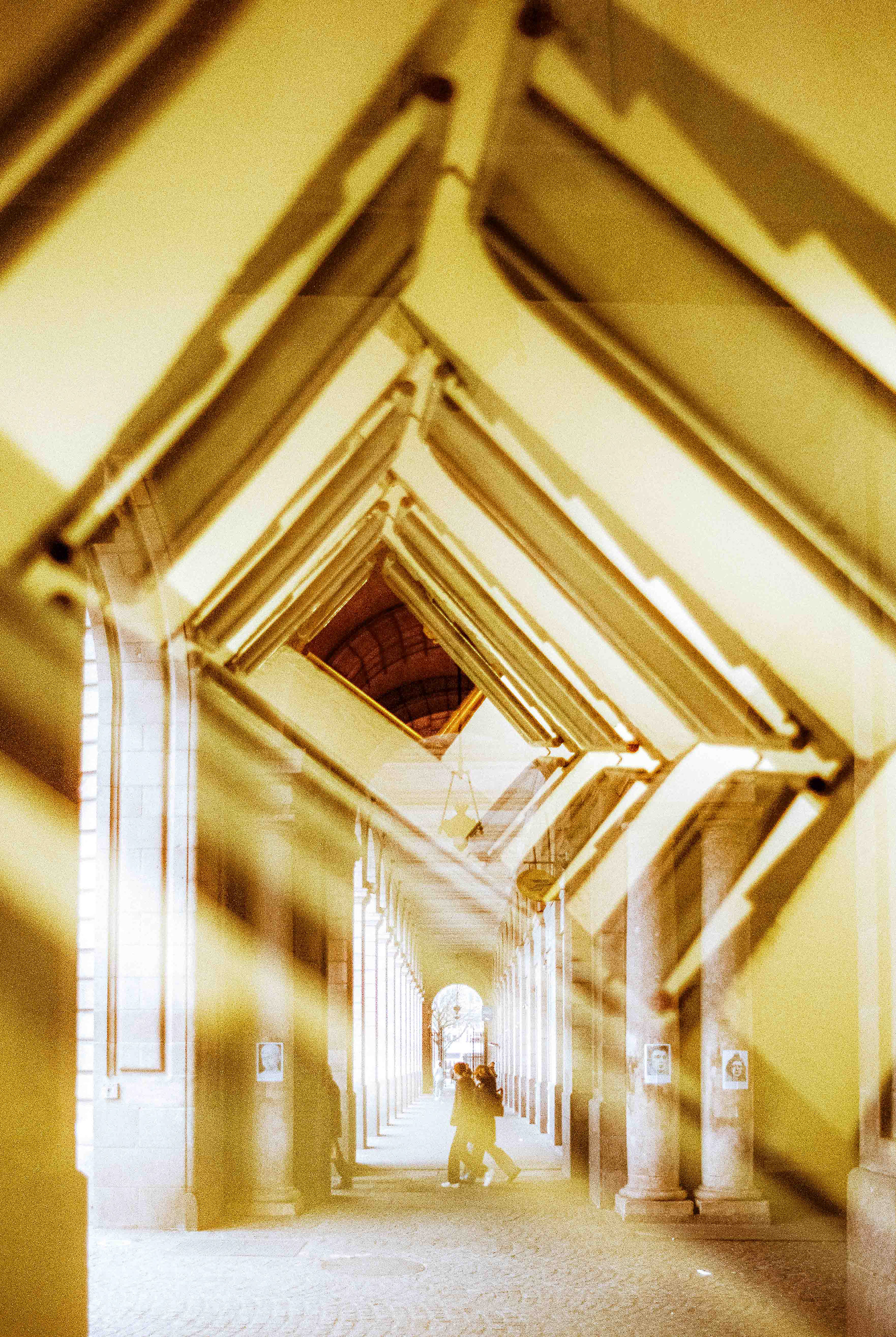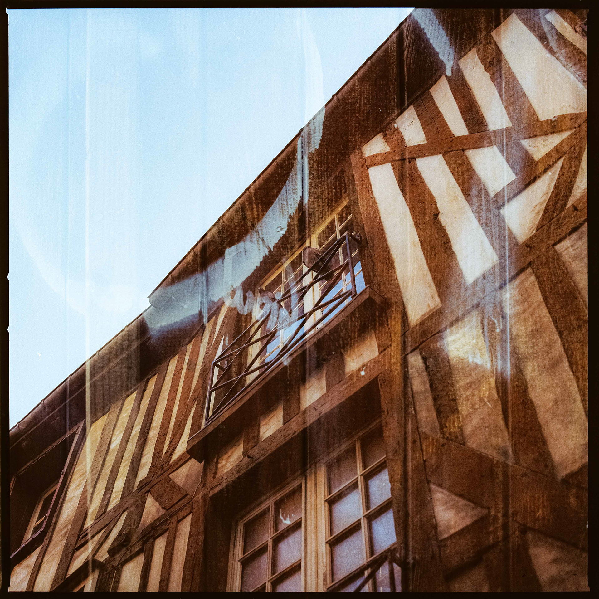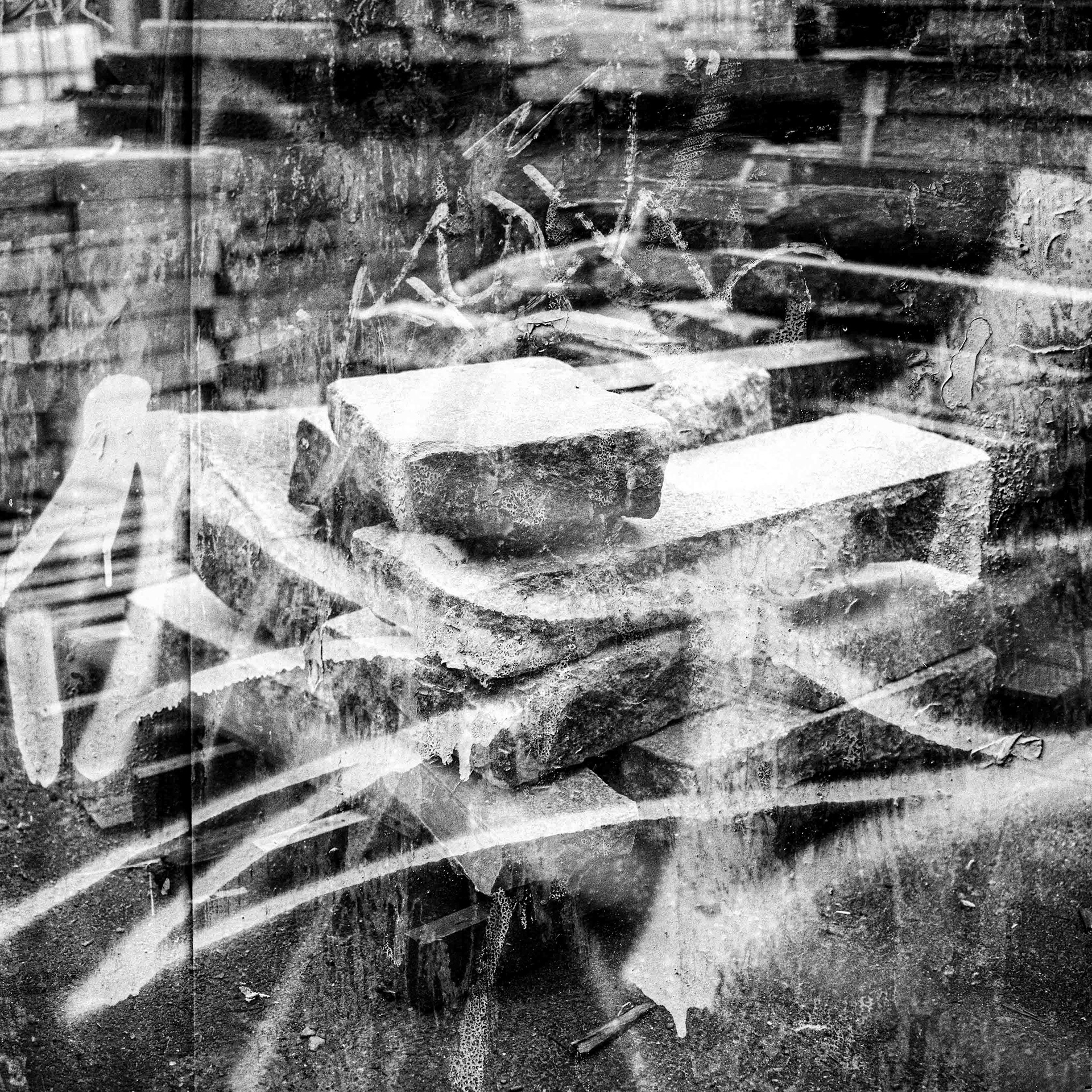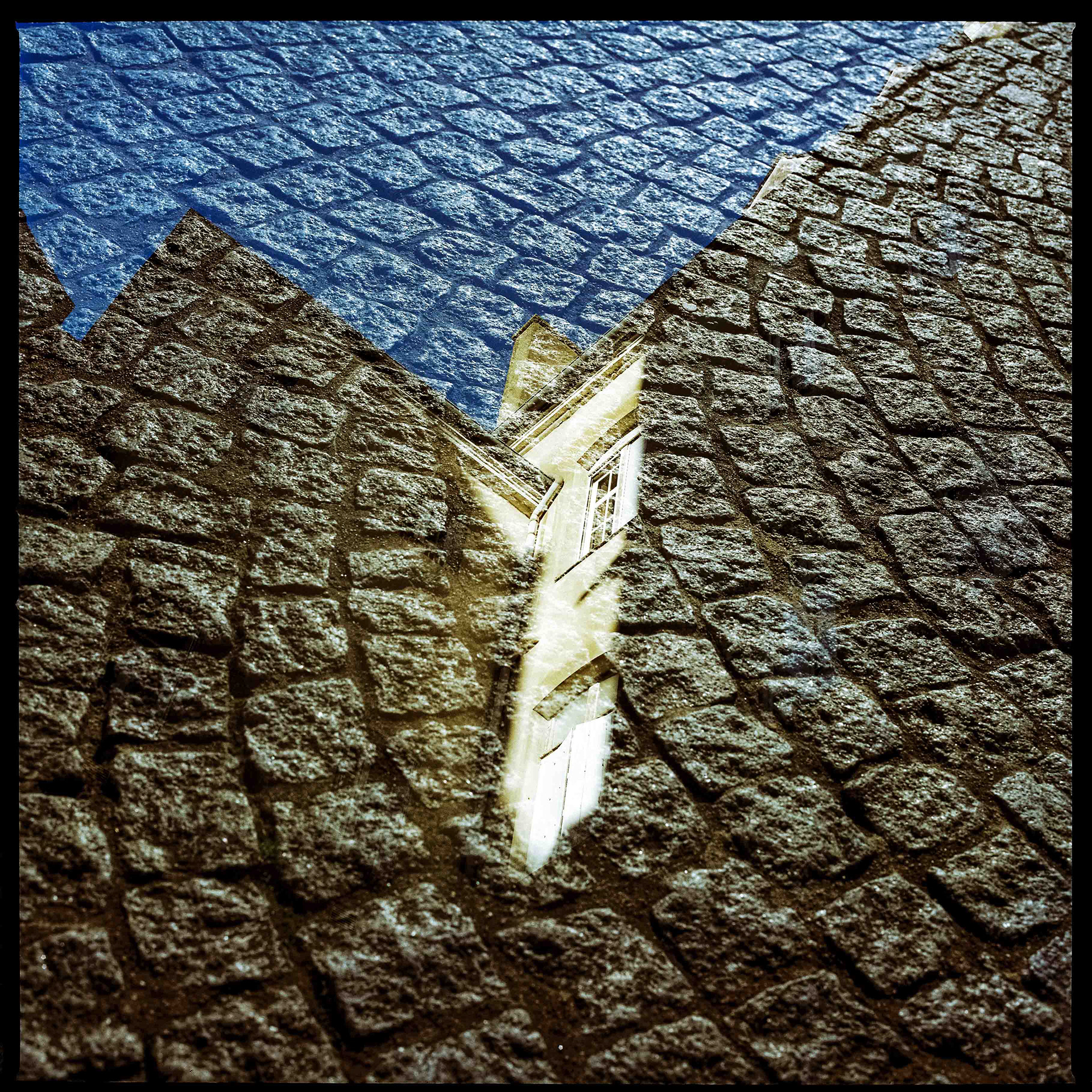 La double exposition est une technique photographique qui consiste à superposer plusieurs images, selon plusieurs procédés. Ici, elle est réalisée à l'argentique, en déclenchant plusieurs fois l'appareil dans des environnements différents, sans faire avancer la pellicule, ce qui créer cette superposition de couches. Ce procédé me permets de mélanger, les lieux, les textures, les formes, les lumières et les ombres en créant des images riches, à la limite de la compréhension.