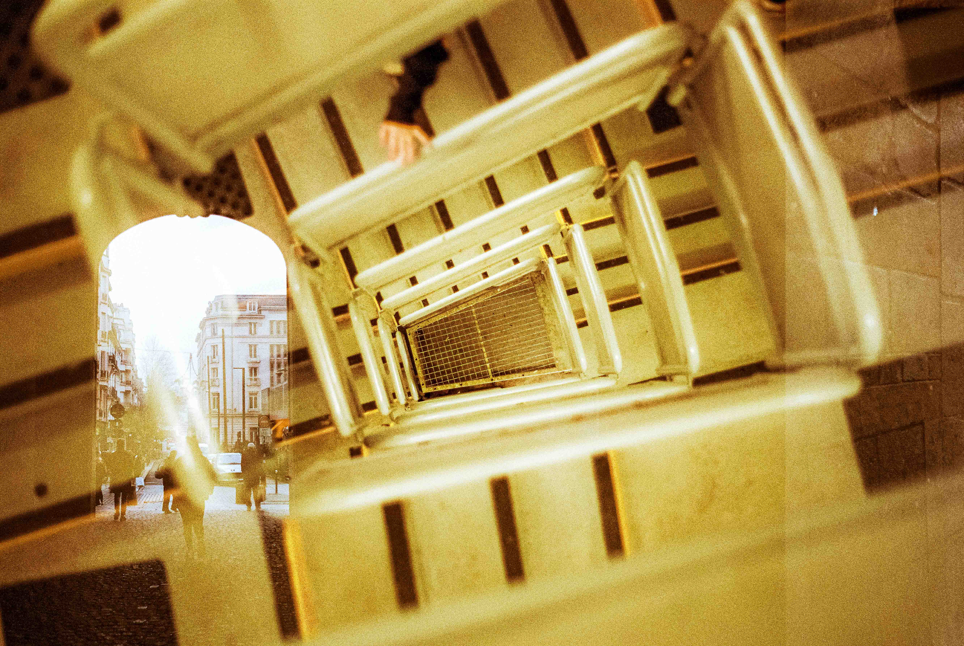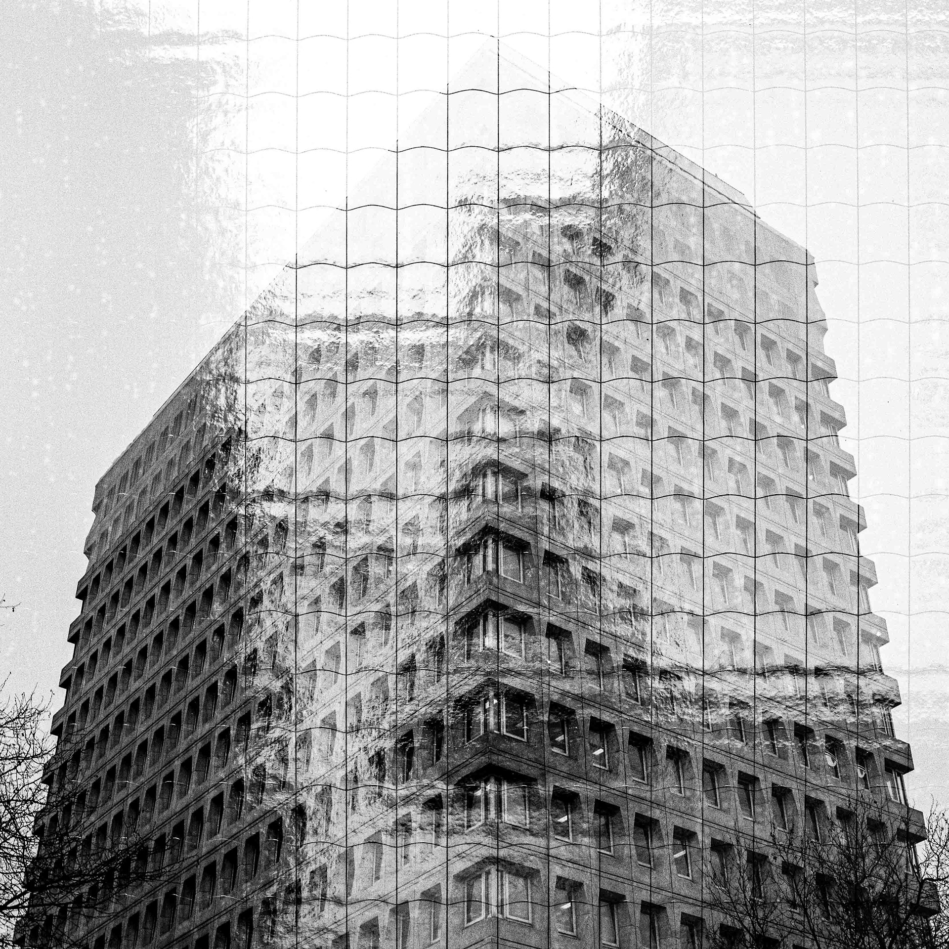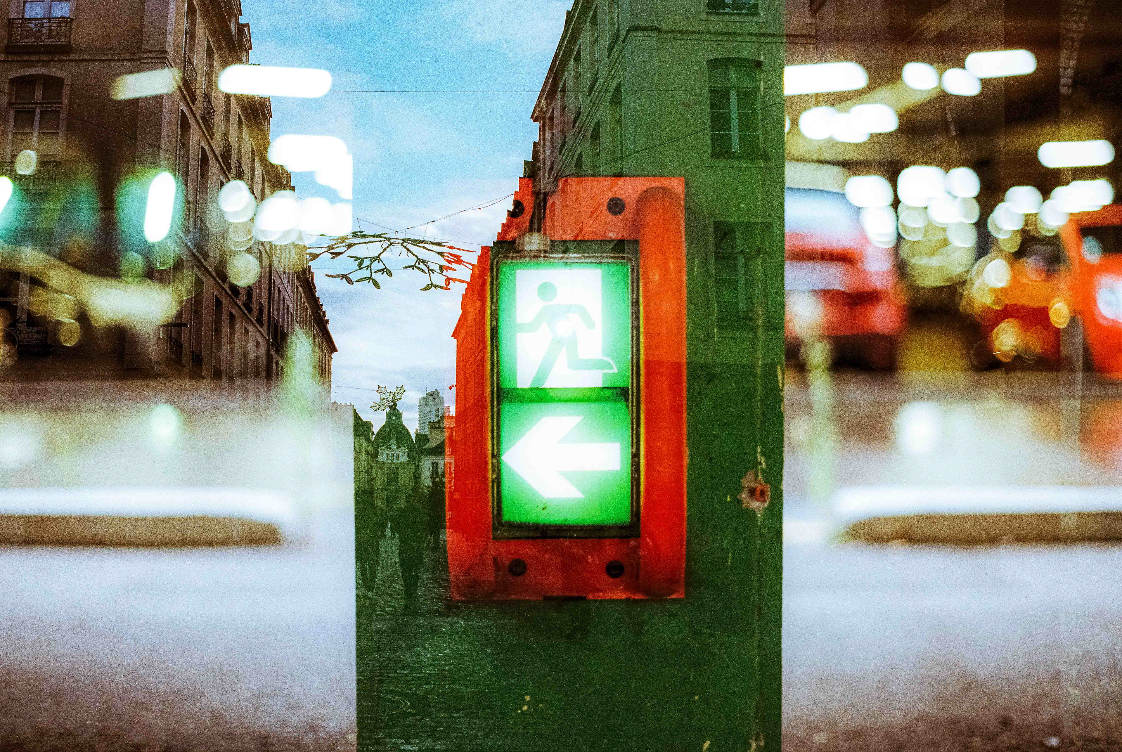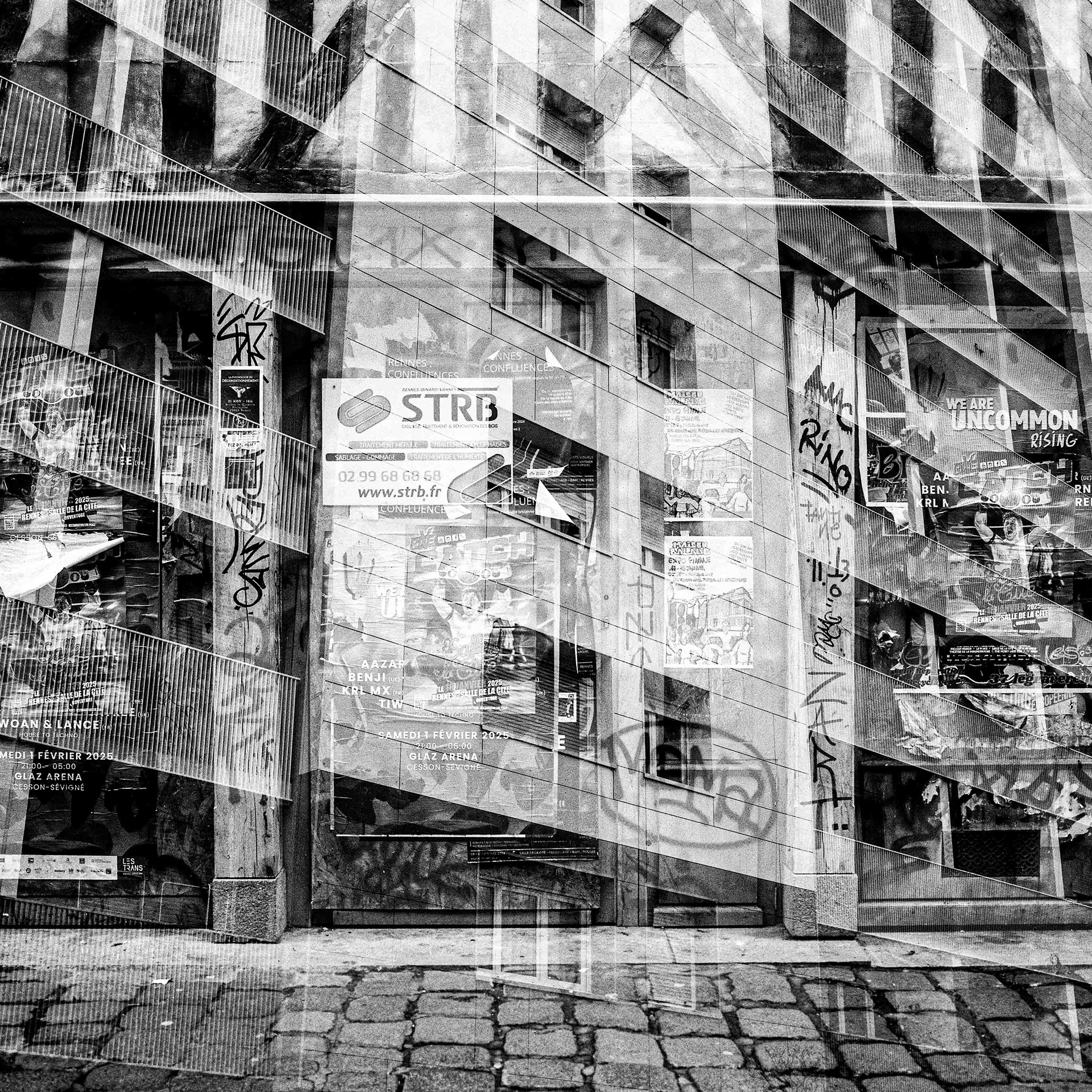 La double exposition est une technique photographique qui consiste à superposer plusieurs images, selon plusieurs procédés. Ici, elle est réalisée à l'argentique, en déclenchant plusieurs fois l'appareil dans des environnements différents, sans faire avancer la pellicule, ce qui créer cette superposition de couches. Ce procédé me permets de mélanger, les lieux, les textures, les formes, les lumières et les ombres en créant des images riches, à la limite de la compréhension.